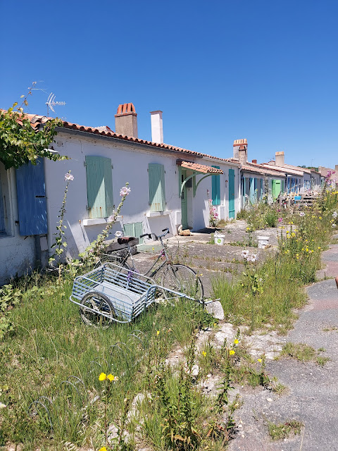 L'île d'Aix, reconnaissable à ces deux phares presque jumeaux, dépasse à peine le km carré. En faire le tour fait entre 8 et 9km que vous pouvez parcourir à pieds, à vélo (location sur place) ou en calèche. Il y a des forts à visiter, ainsi que le musée de la nacre, le musée Napoléon et le musée africain. Et il y a des plages. Pour notre part, après avoir traversé le bourg, nous avons visité la boutique-atelier-musée de la nacre. Nous avons mangé au Café de l'Océan que je recommande. Service très aimable, rapide et cuisine goûteuse. Petit bémol pour le menu enfant unique avec son steak haché presque cru-frites. Puis, nous sommes allés à la grande plage, où il y avait des tonnes de coquillages. Nous aurions bien marché un peu plus mais les enfants n'étaient pas du tout collaborants.
